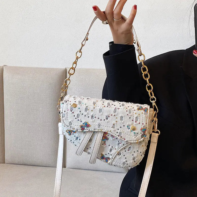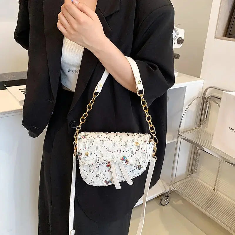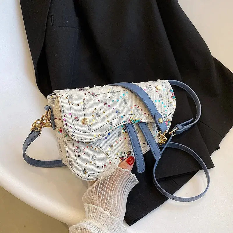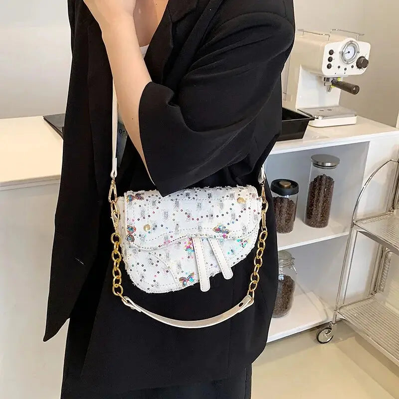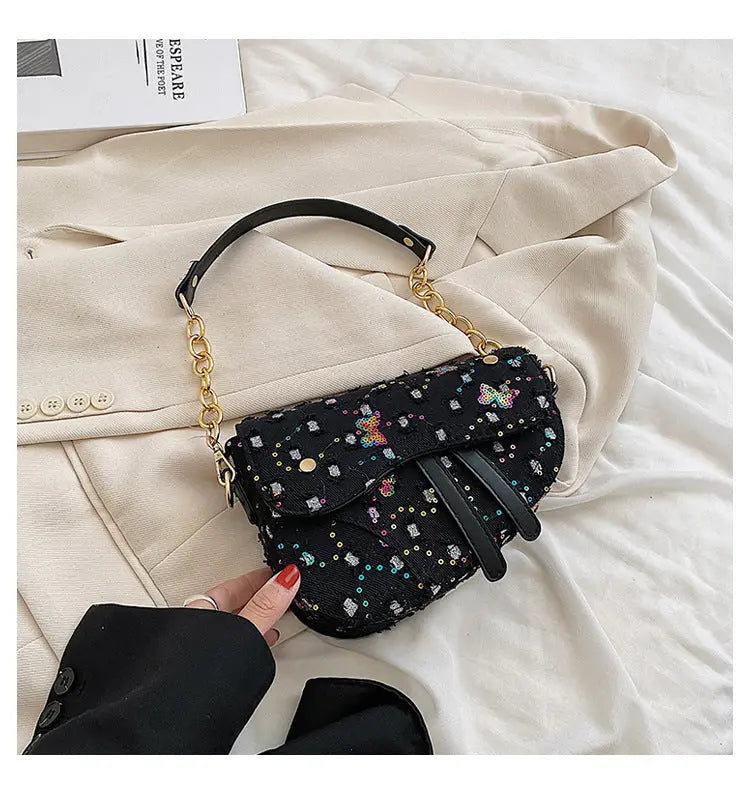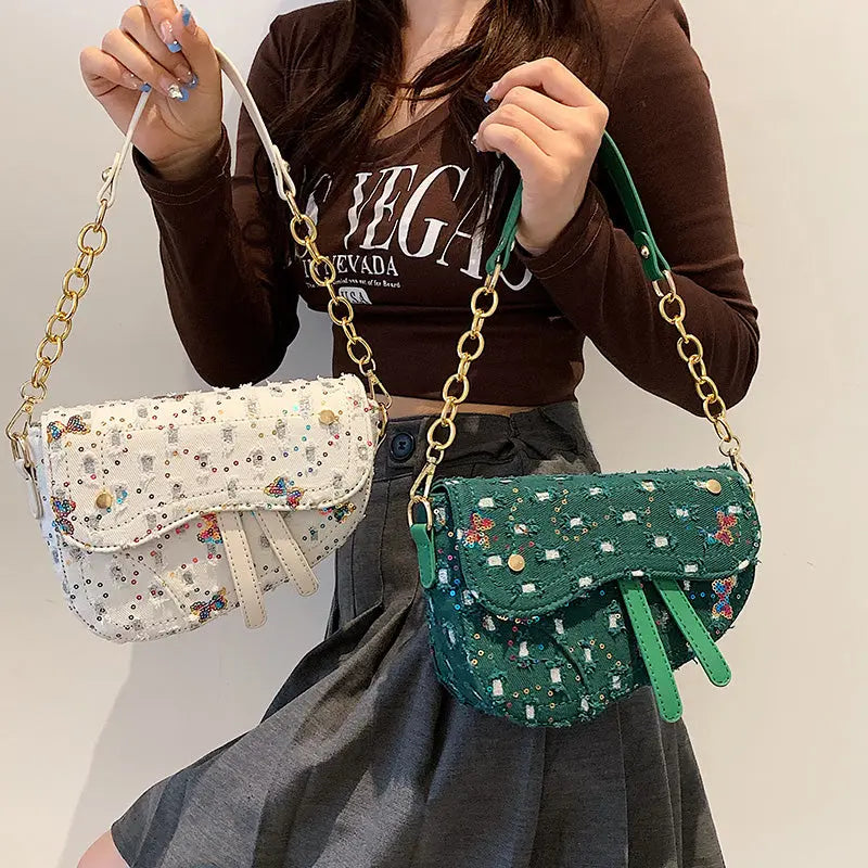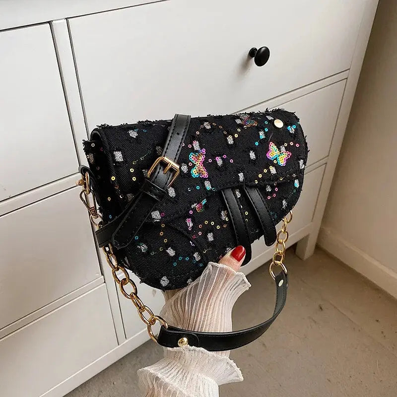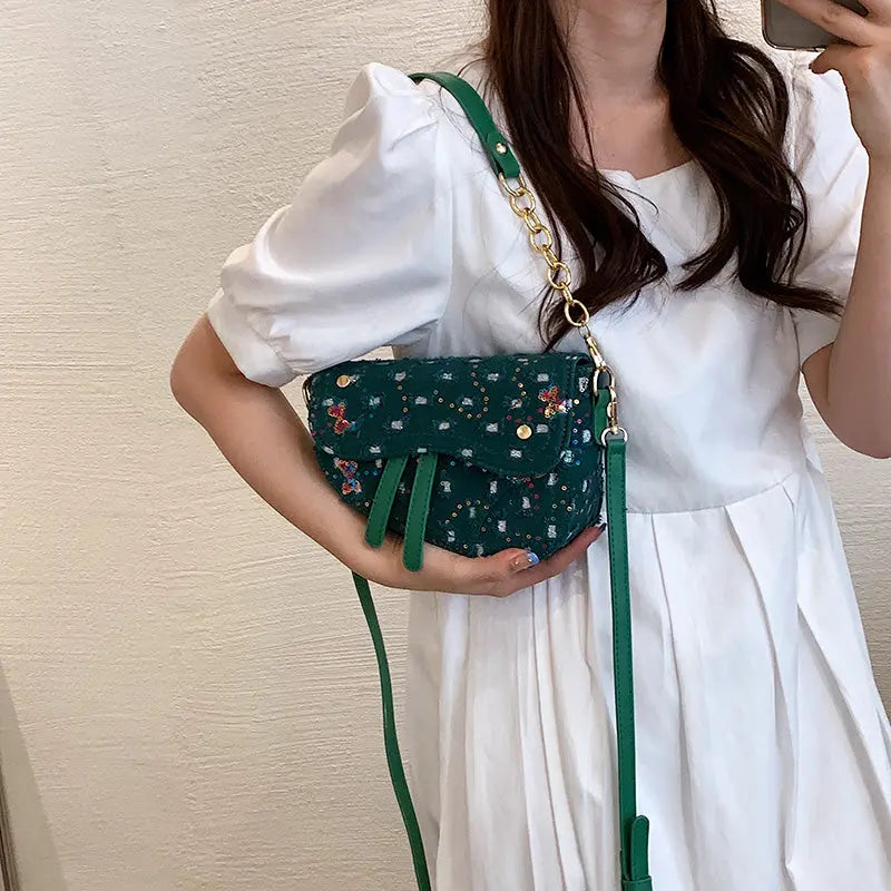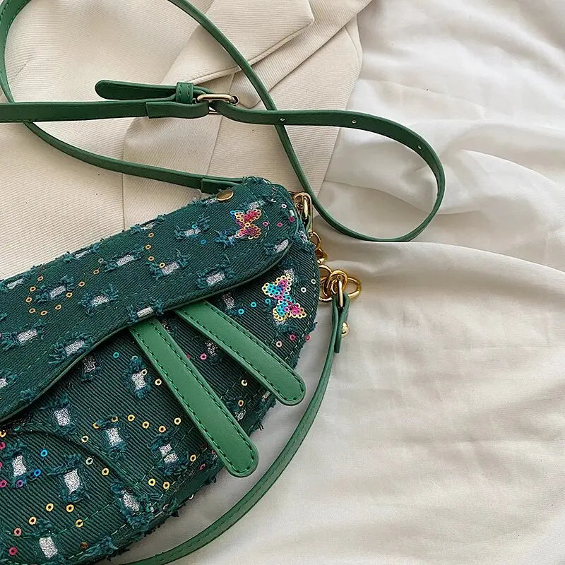 Elevate your fashion game with our dazzling Sequin Embroidered Saddle Shoulder Bags, a must-have accessory for those who love to stand out. Crafted with intricate sequin detailing and elegant embroidery, these bags add the perfect touch of glamour to any outfit—day or night. Whether you're attending a party, a festive event, or a casual outing, these shoulder bags offer both sophistication and function.