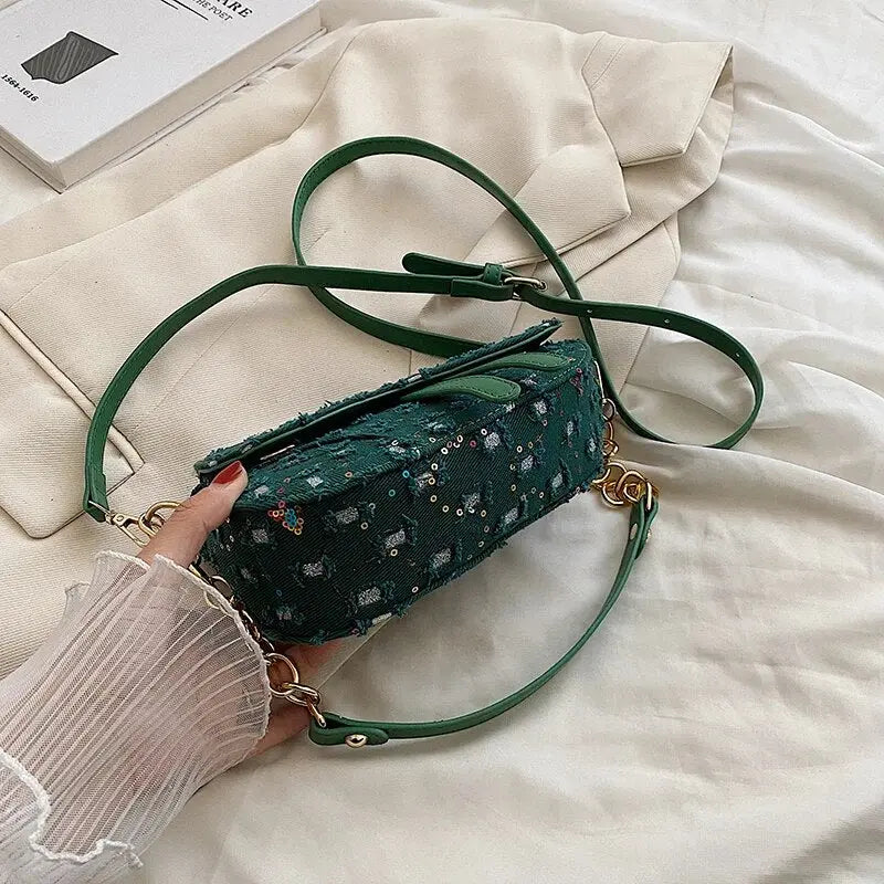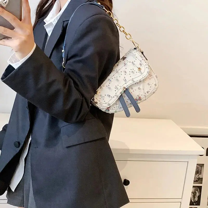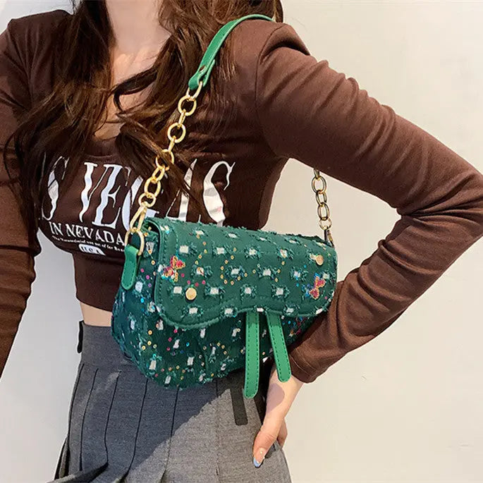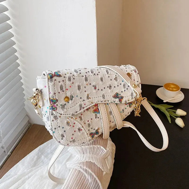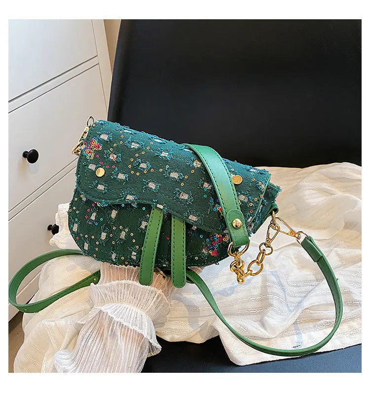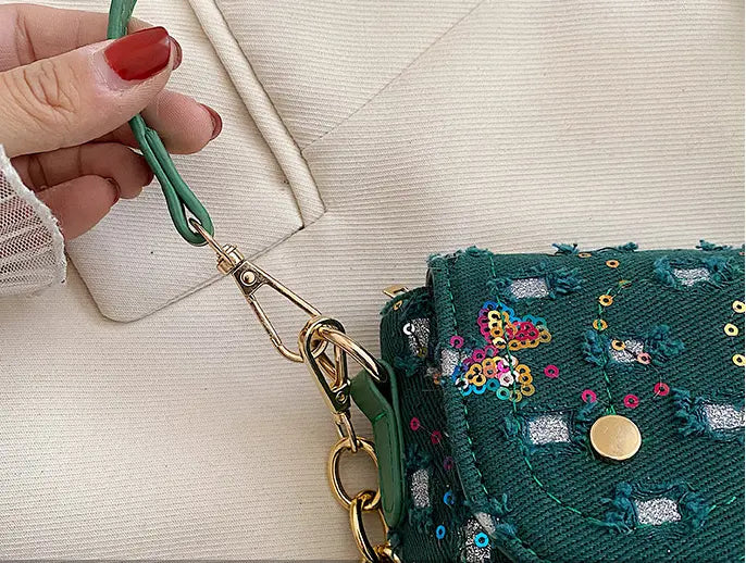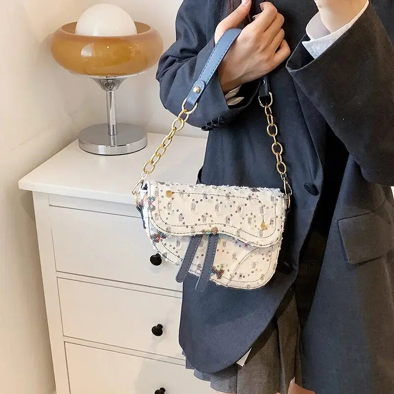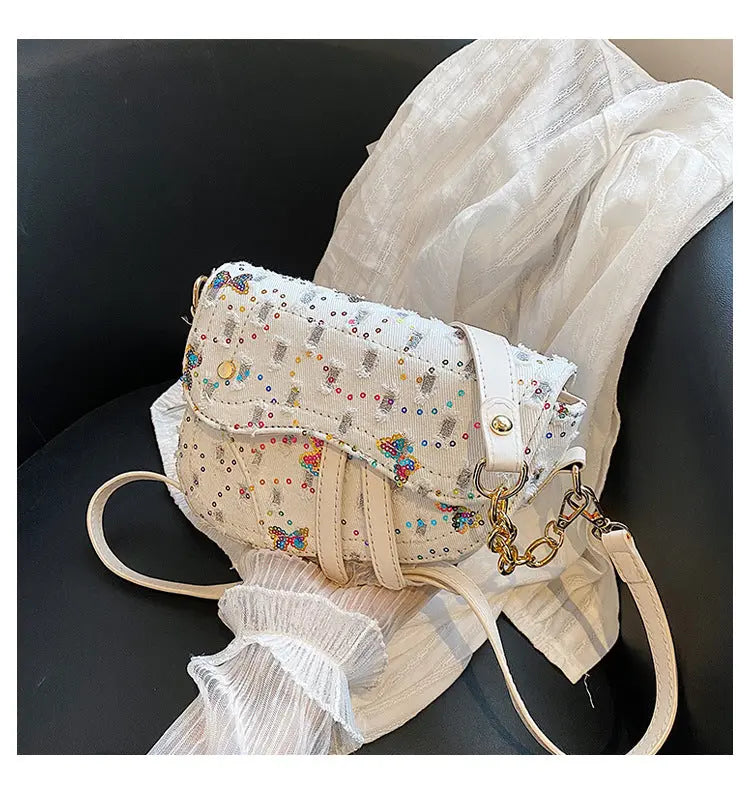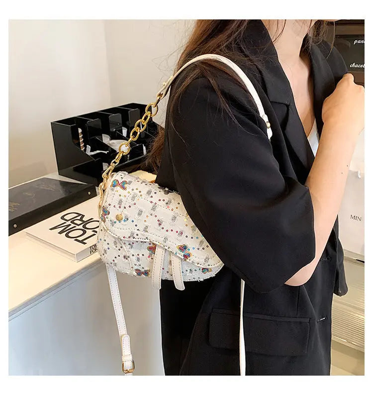 Elevate your fashion game with our dazzling Sequin Embroidered Saddle Shoulder Bags, a must-have accessory for those who love to stand out. Crafted with intricate sequin detailing and elegant embroidery, these bags add the perfect touch of glamour to any outfit—day or night. Whether you're attending a party, a festive event, or a casual outing, these shoulder bags offer both sophistication and function.