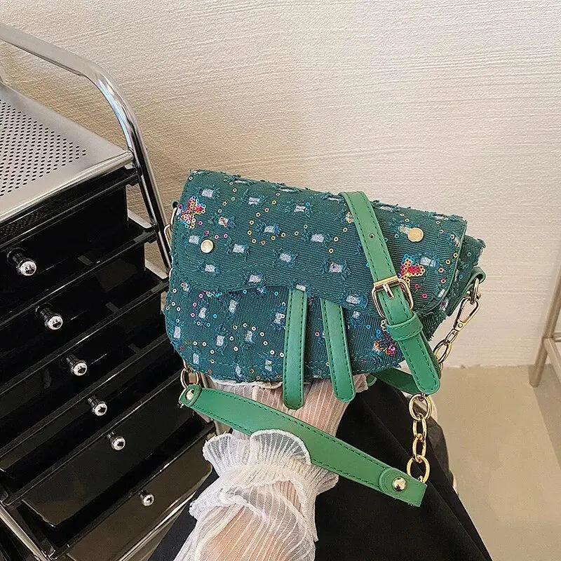 Made from high-quality materials, these shoulder bags are built to last, making them a smart style investment. Their timeless design ensures they never go out of fashion, and the vibrant colors make them pop in any season. Whether you're shopping online for fashion-forward accessories or a statement piece, these Sequin Embroidered Saddle Shoulder Bags are your answer.